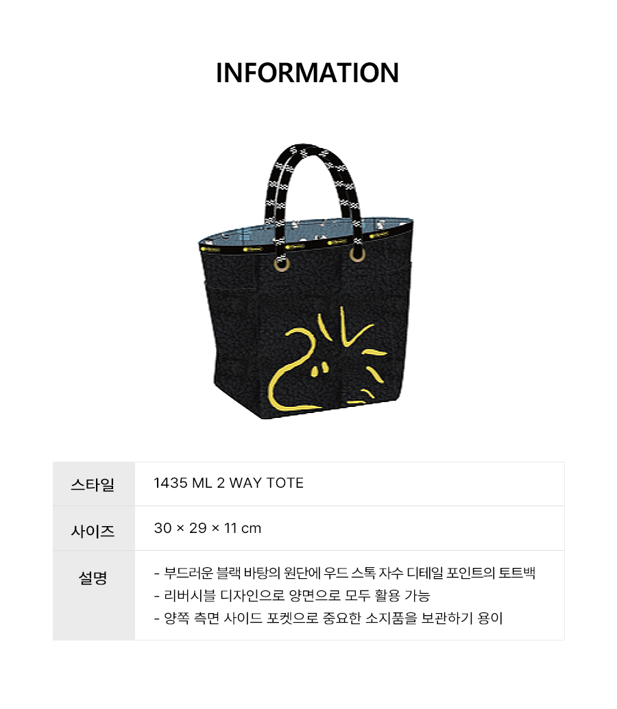 레스포색 피너츠 투웨이 우드스톡 미디움 토트백