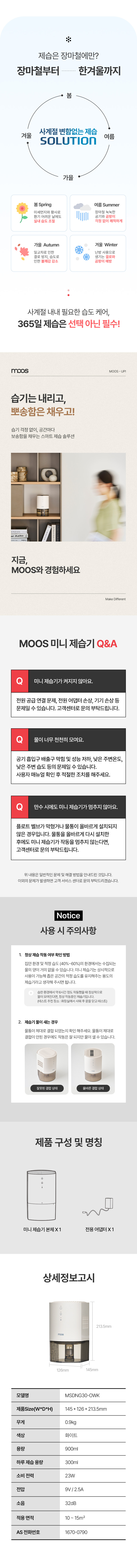 위닉스 MOOS 초저소음 원룸 옷장 용실용 미니제습기 300mL MSDNG30-OWK