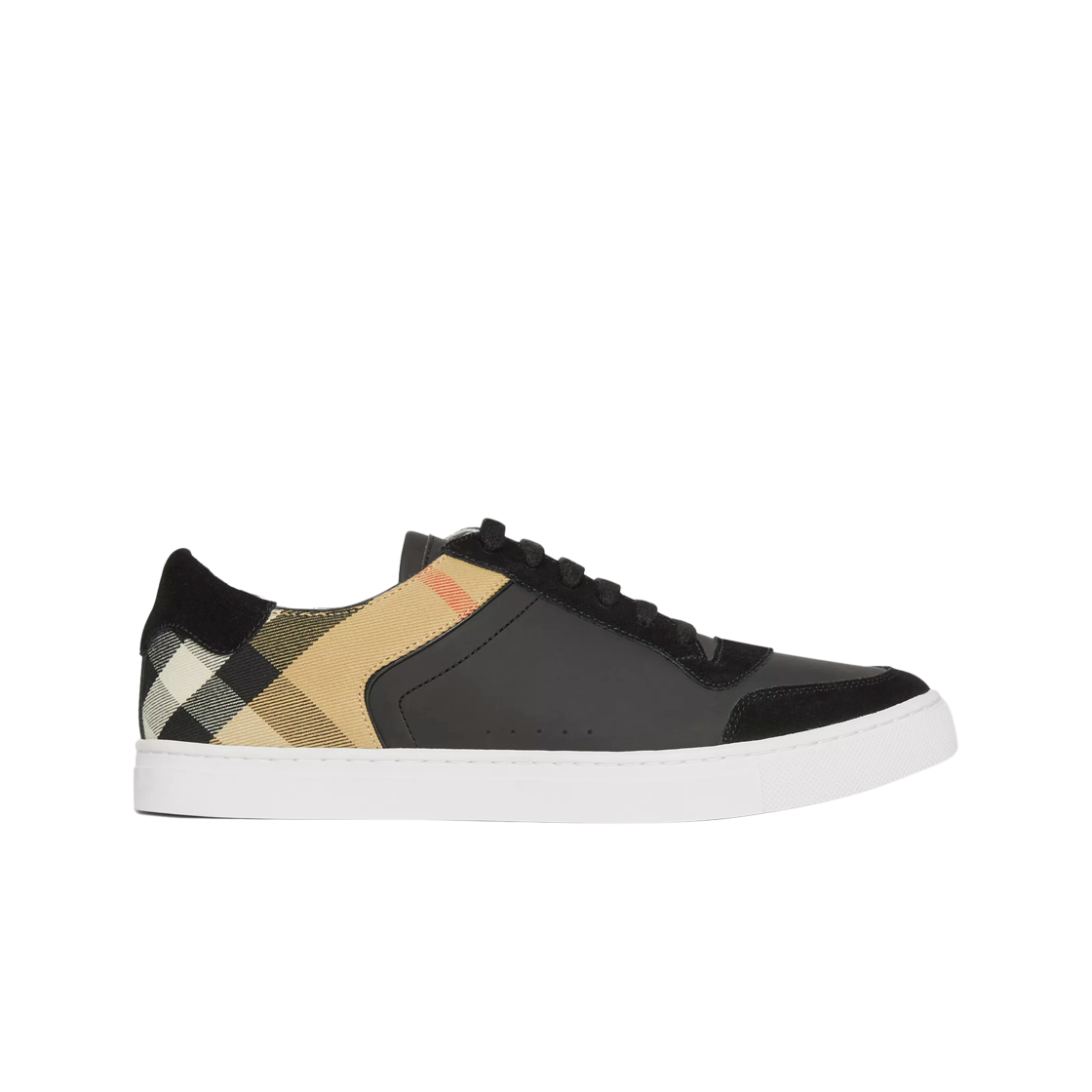 Burberry Leather Suede House Check Cotton Sneakers Black