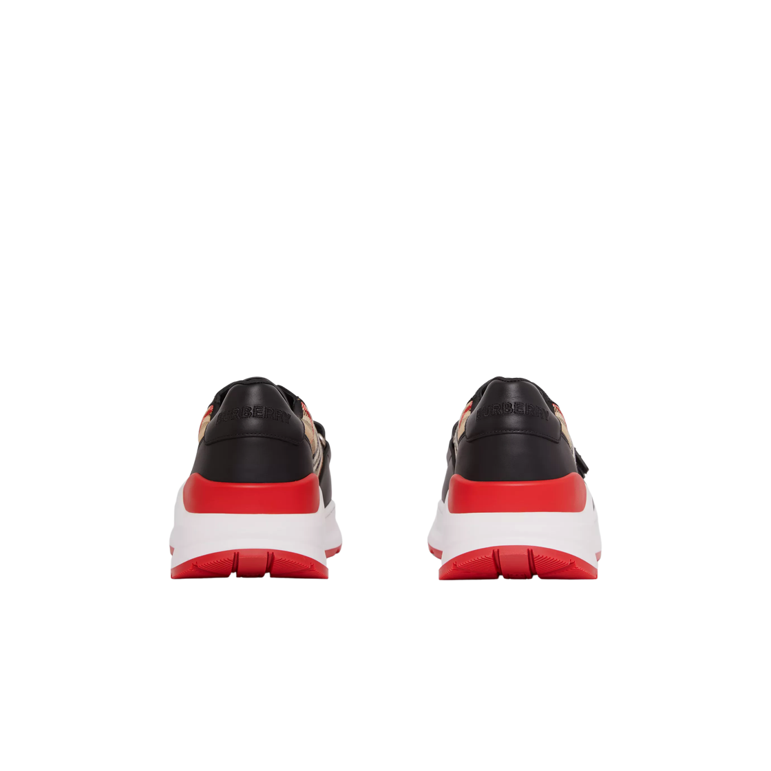 (W) Burberry Leather Vintage Check Cotton Sneakers Black Archive Beige