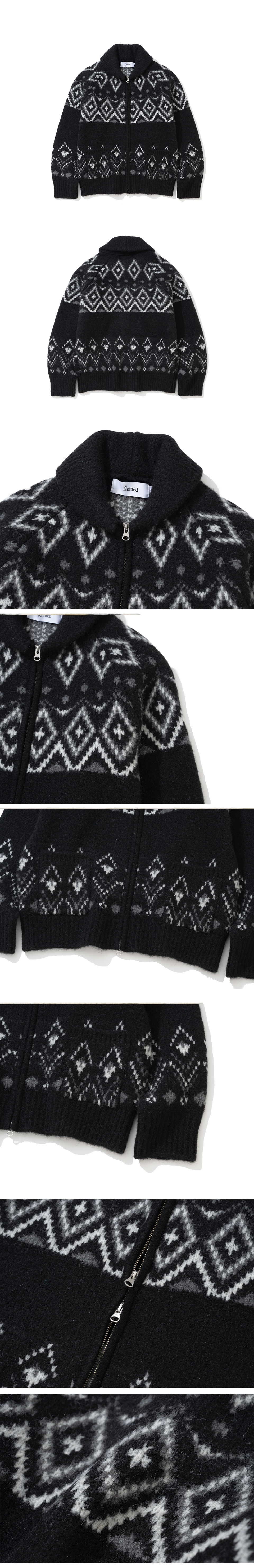 니티드 벌키 울 다이아몬드 집업 블랙