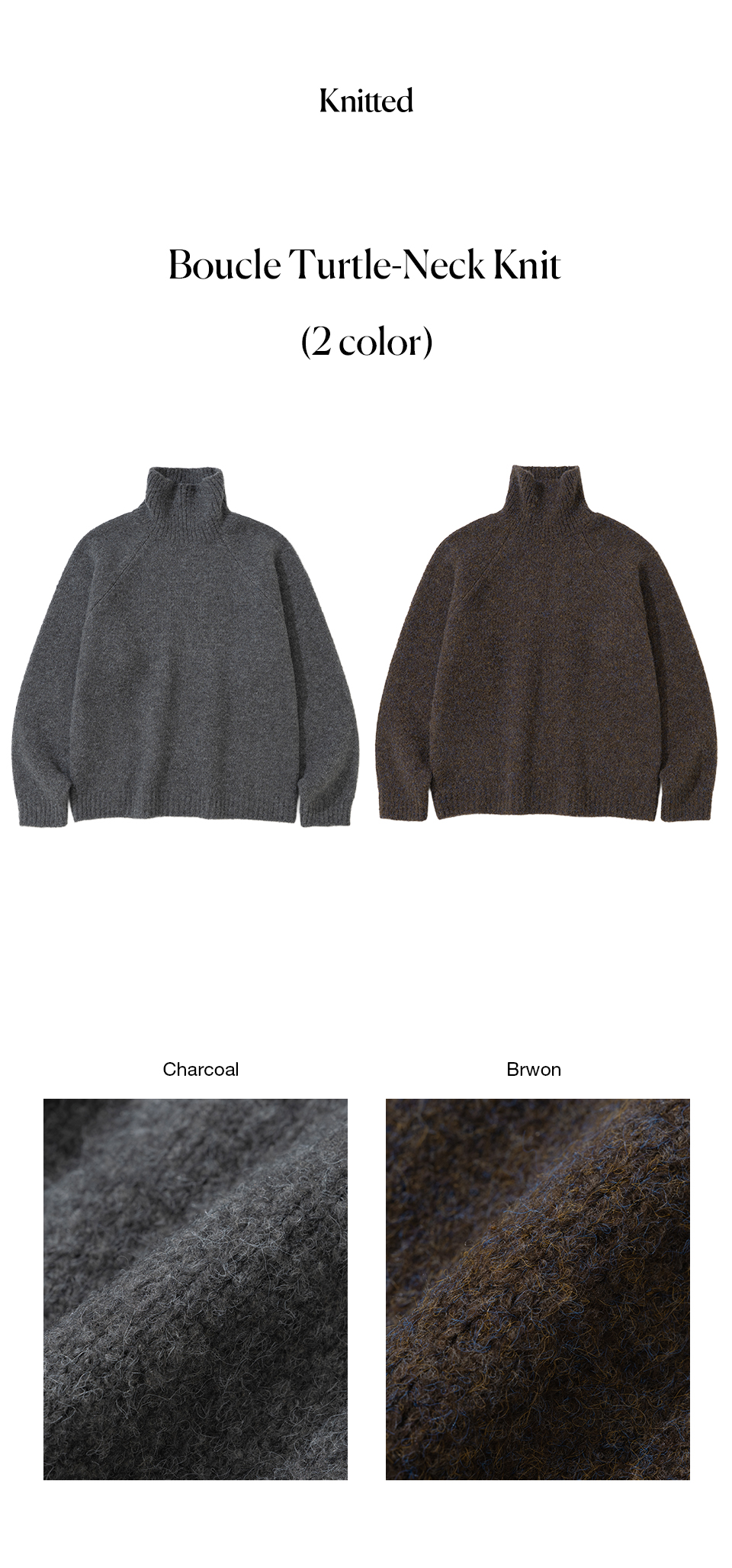 니티드 부클 터틀넥 니트 차콜