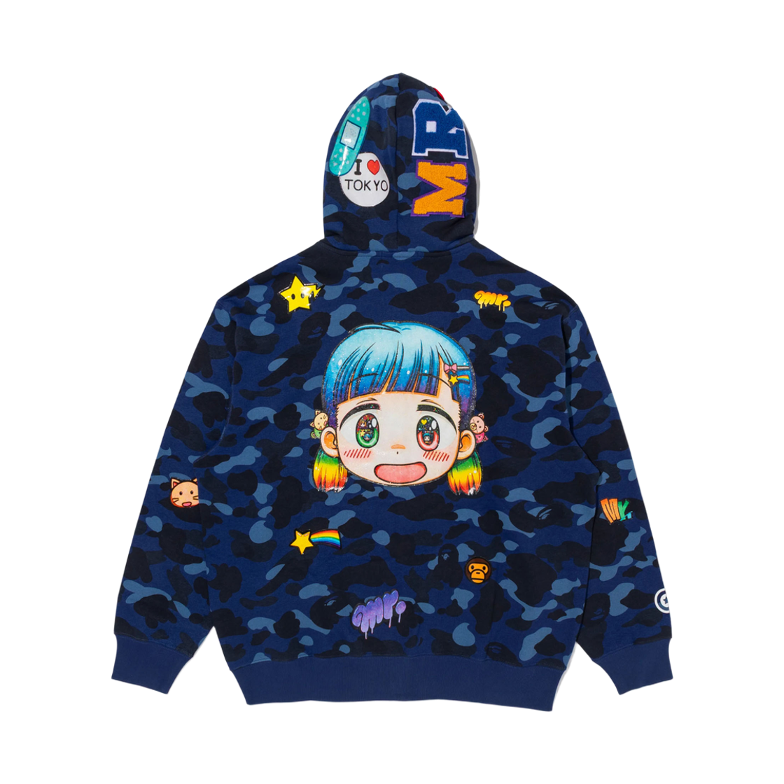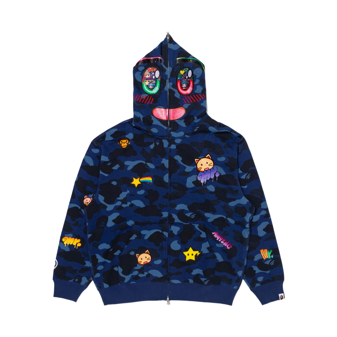 베이프 x 미스터 샤크 풀 집 후드 블루 멀티