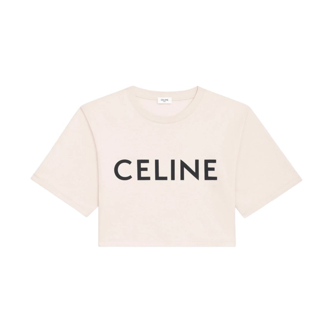 (W) Celine Cropped T-Shirt in Cotton Jersey Ivory Black