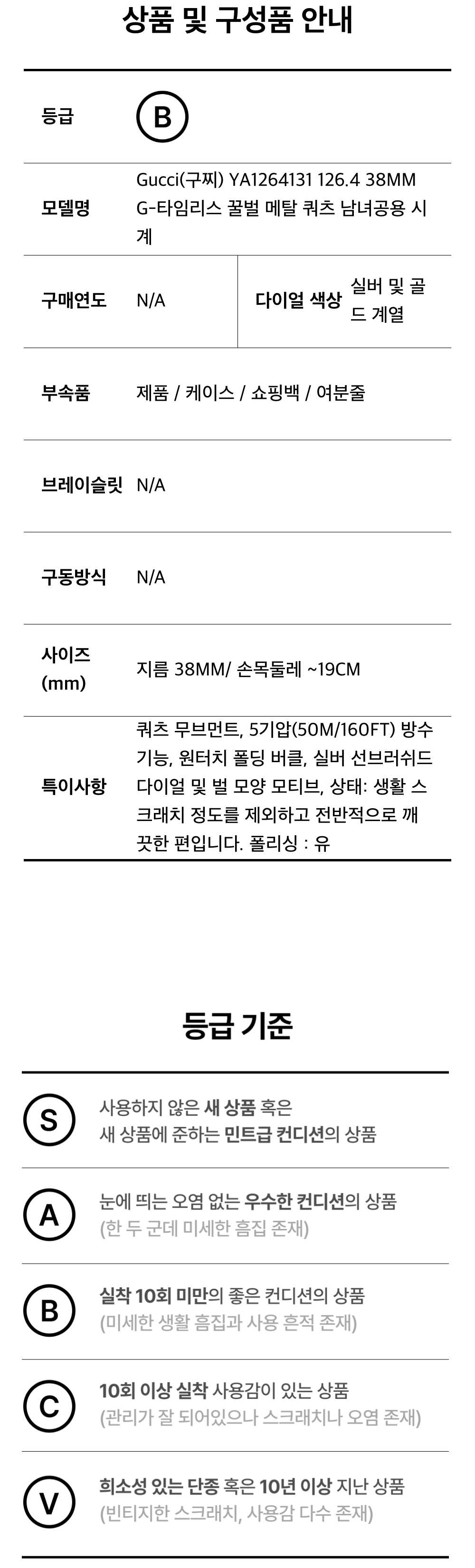 구찌 A1264131 126.4 38MM G-타임리스 꿀벌 메탈 쿼츠 남녀공용 시계