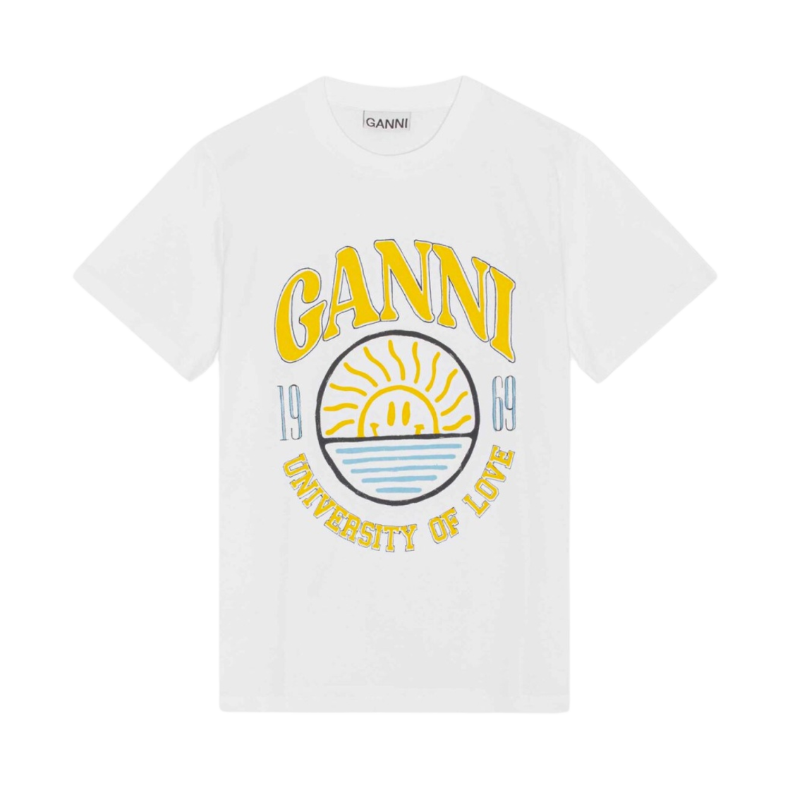 (W) Ganni Sun University of Love T-Shirt Bright White