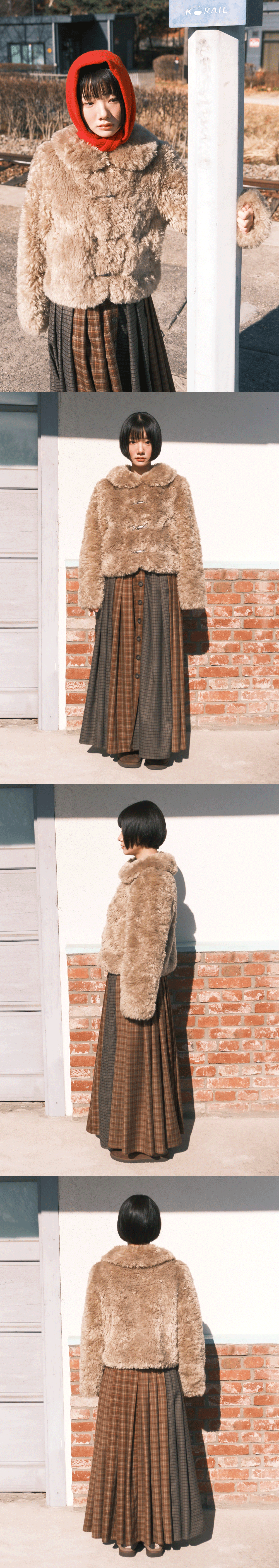 PRODUCT INFO - 페이크 퍼 원단의 자켓 - 라운드 칼라 디자인 - 토글 오픈 클로징 BODY POLYESTER 100 / LINING POLYESTER 100 드라이 클리닝 SIZE GUIDE ONE SIZE 총장 51 어깨 41 가슴 52 밑단 52 소매길이 62 MODEL 160CM, 44SIZE