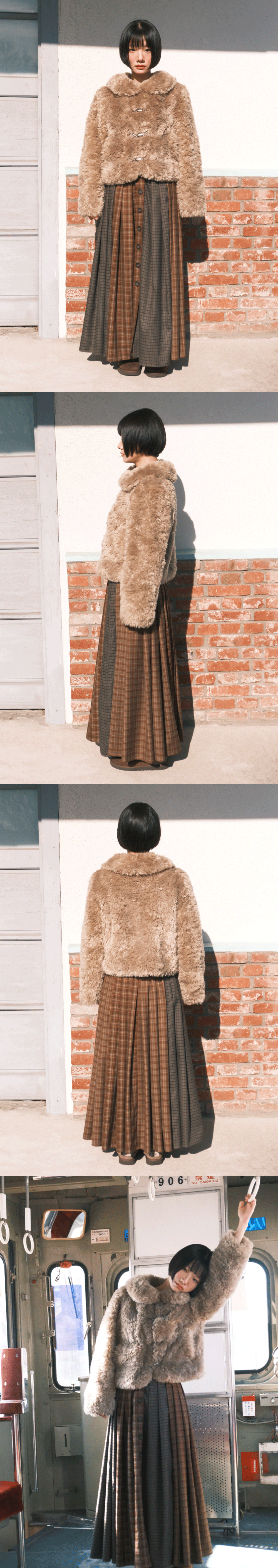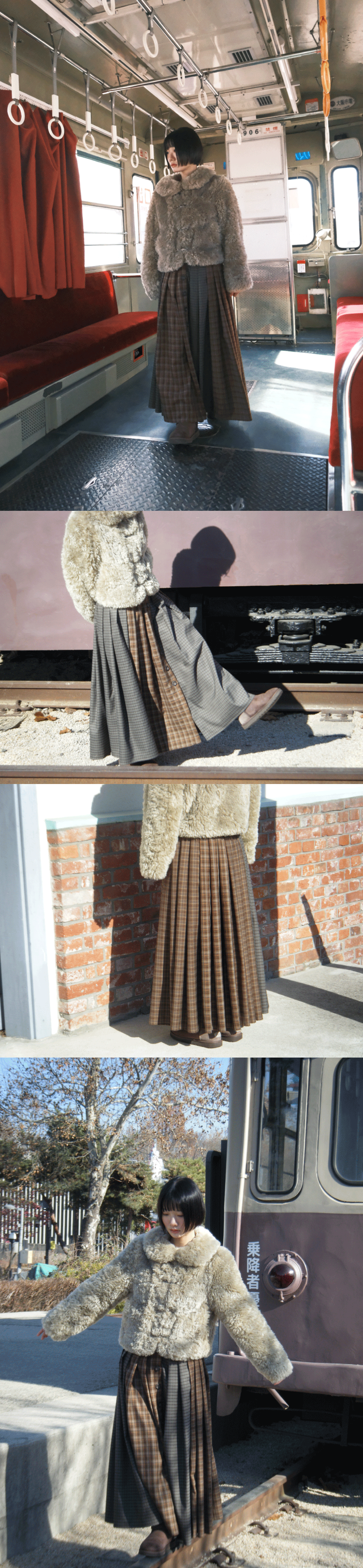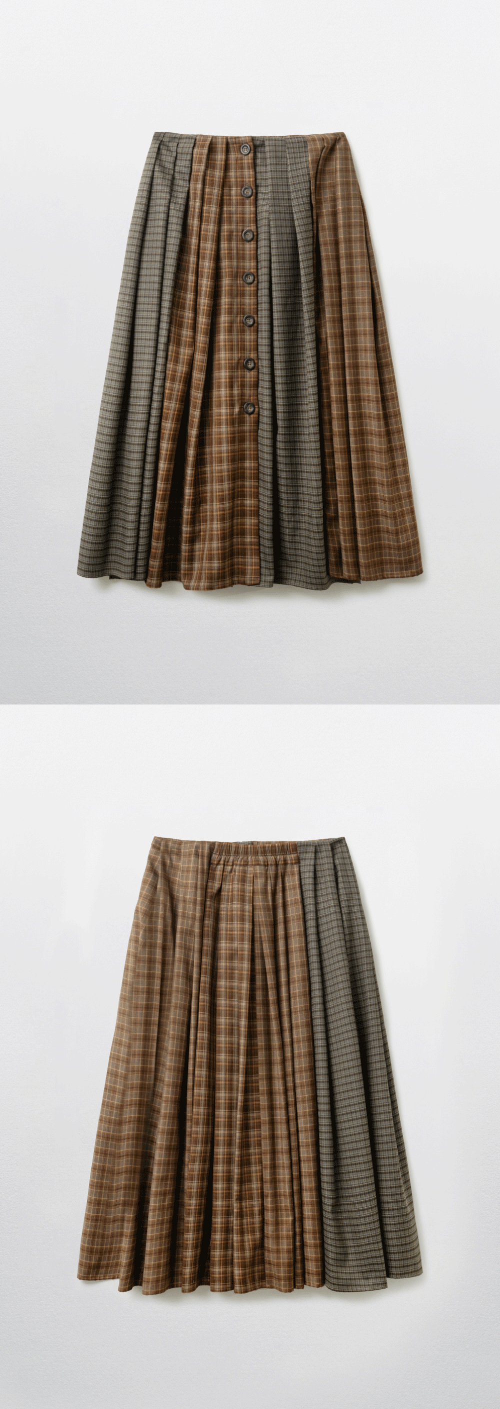 PRODUCT INFO - 플레어 라인의 맥시 기장 스커트 - 다양한 체크 패턴 원단 사용 - 전체 버튼 오픈 클로징 - 허리 전체 개더 디자인 - 허리 부분 밴딩 POLYESTER 75 RAYON 23 SPAN 2 드라이클리닝 권장 (건조기 사용 금지) SIZE GUIDE ONE SIZE 총장 83.5 허리 34~40 힙 55~ MODEL 160CM, 44SIZE