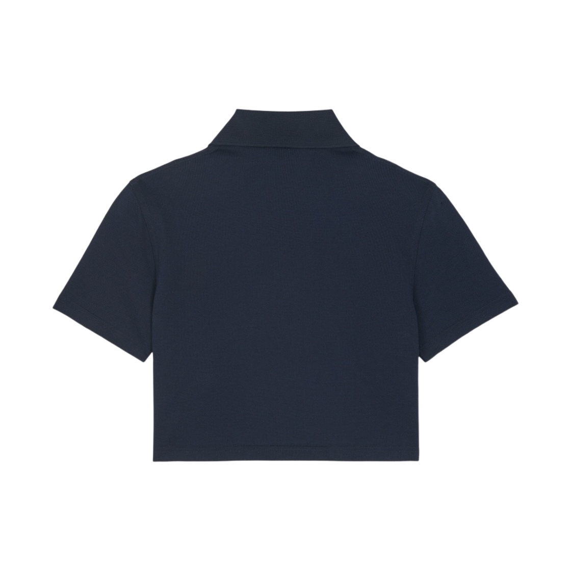 (W) Saint Laurent Monogram Cotton Pique Cropped Polo Shirt Marine