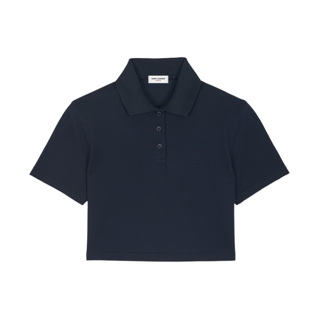 (W) 생로랑 모노그램 코튼 피케 크롭 폴로 셔츠 마린