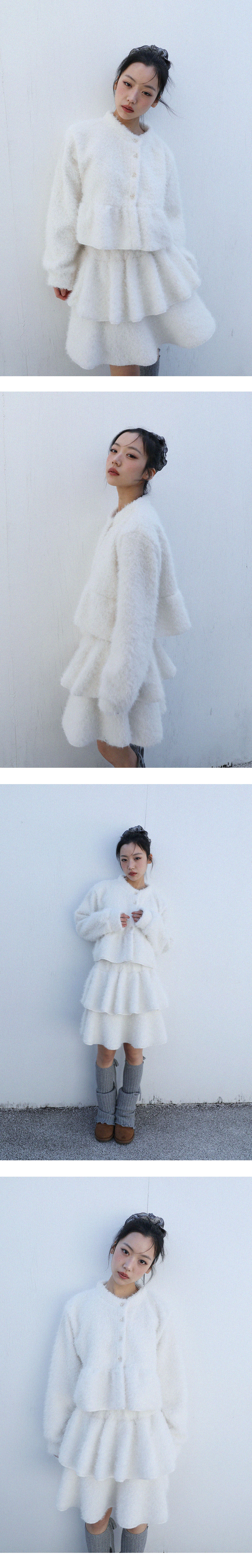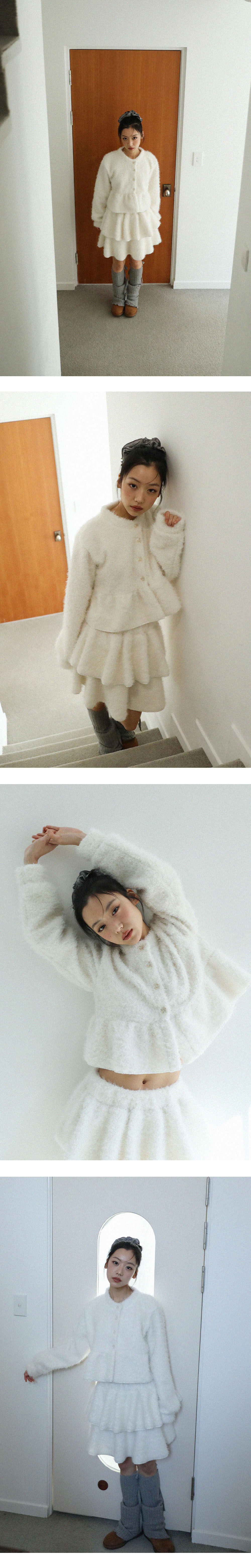 [MADE IN KOREA] [Material] Polyester 100% [Date of Manufacture] 2025.11 [Model] 160cm / Top (S) Bottom (S) ** Model Fitting Size : F [Size Guide] F : Waist 32 Hip 46 Hem 99 Total Length 45 (cm) * 측정 방식에 따라 1-2 cm 오차가 있을 수 있습니다. * 화면에 따라 실제 색상이 차이가 날 수 있습니다. 속바지가 내장 되어 있습니다. 겉감은 부클레 원단을 사용하여 포슬포슬한 텍스처이며, 안감은 부드러운 기모 원단을 사용하여 한층 더 따뜻하게 착용하실 수 있는 스커트 입니다. * 드라이클리닝 권장 * 손세탁 시 중성세제 사용, 비틀기 금지 * 건조기 사용 금지, 그늘 자연건조 * 비틀기·탈수·건조기 금지