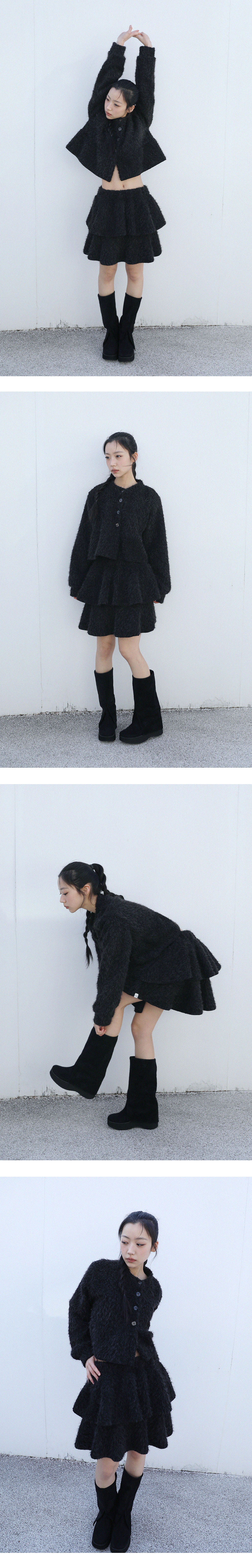 [MADE IN KOREA] [Material] Polyester 100% [Date of Manufacture] 2025.11 [Model] 160cm / Top (S) Bottom (S) ** Model Fitting Size : F [Size Guide] F : Waist 32 Hip 46 Hem 99 Total Length 45 (cm) * 측정 방식에 따라 1-2 cm 오차가 있을 수 있습니다. * 화면에 따라 실제 색상이 차이가 날 수 있습니다. 속바지가 내장 되어 있습니다. 겉감은 부클레 원단을 사용하여 포슬포슬한 텍스처이며, 안감은 부드러운 기모 원단을 사용하여 한층 더 따뜻하게 착용하실 수 있는 스커트 입니다. * 드라이클리닝 권장 * 손세탁 시 중성세제 사용, 비틀기 금지 * 건조기 사용 금지, 그늘 자연건조 * 비틀기·탈수·건조기 금지