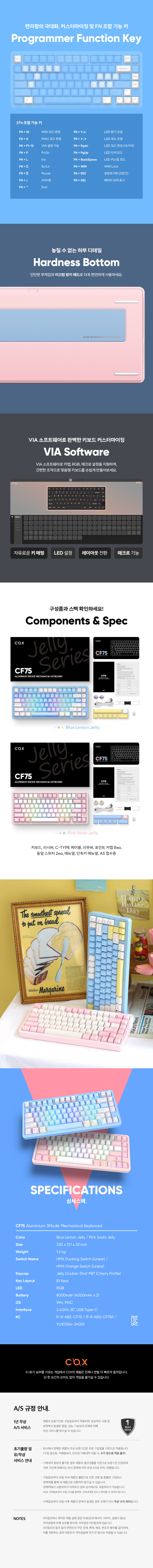 콕스 CF75 미니 뉴타입 젤리 키캡 알루미늄 3모드 유무선 기계식 키보드
