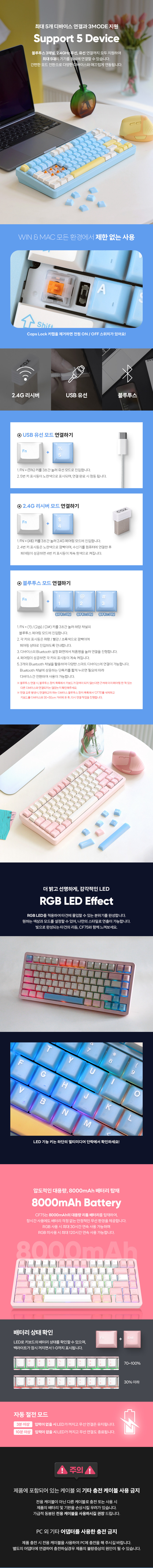 * 젤리타입 PBT 이중사출 * 강화유리 무게추 장착 * 12개 실리콘 가스켓 장착 * 3&5PIN 호환가능 All Swap * 대용량 8000mAh 배터리 * 건축용 6063AI 재질 고강도 알루미늄