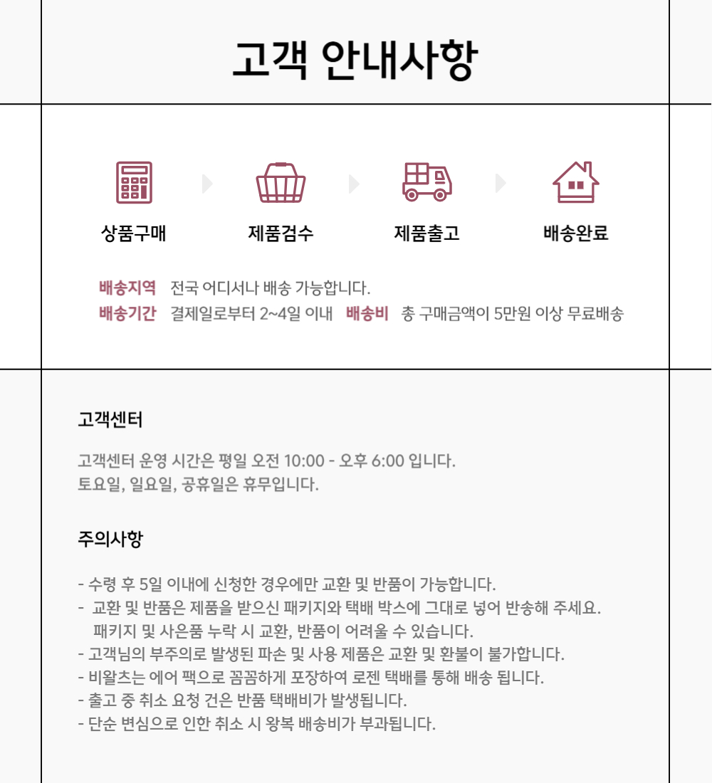 브랜드배송 3,500원 결제 후 2일 내 출고 예정 ・ 5만원 이상 구매 시 배송비 무료
