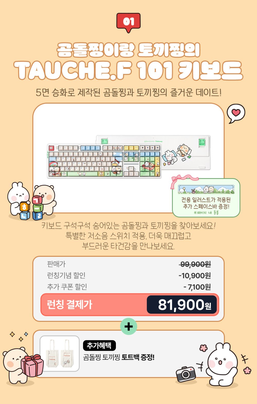 [사은품 증정] ThinkWay TAUCHE.F 101 Keyboard GomDol and Tokki Edition
