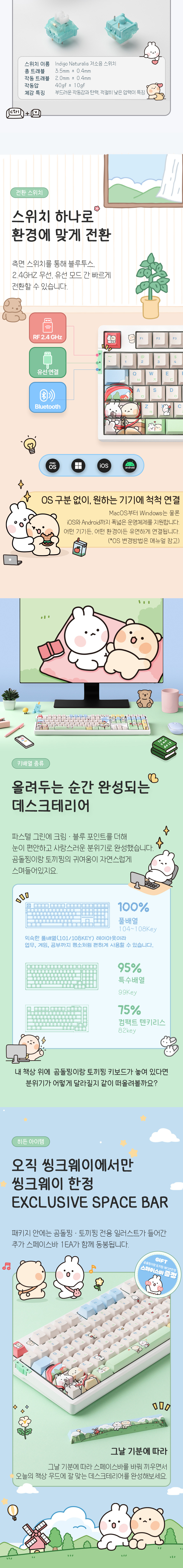 씽크웨이 토체프 101 108키 기계식 유무선 키보드 곰돌찡이랑 토끼찡 에디션