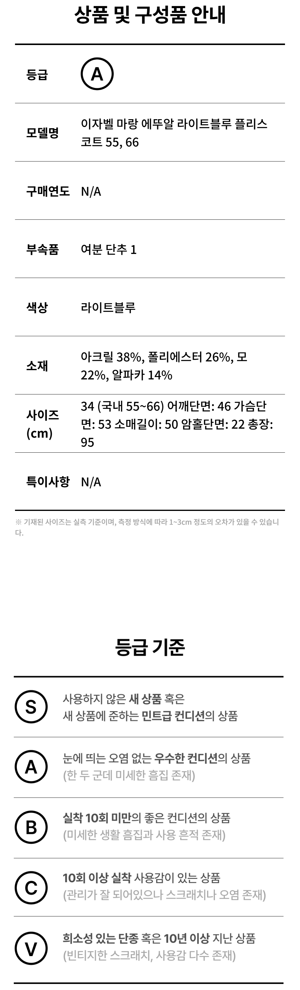 이자벨 마랑 에뚜알 라이트블루 플리스 코트 55, 66