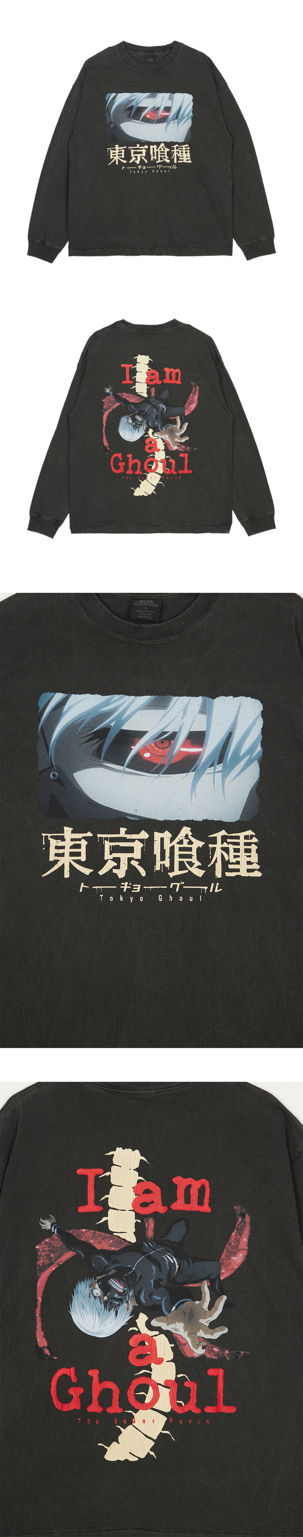 슈가펀치 x 도쿄 구울 긴팔 티셔츠 005 카네키 백 본 블랙