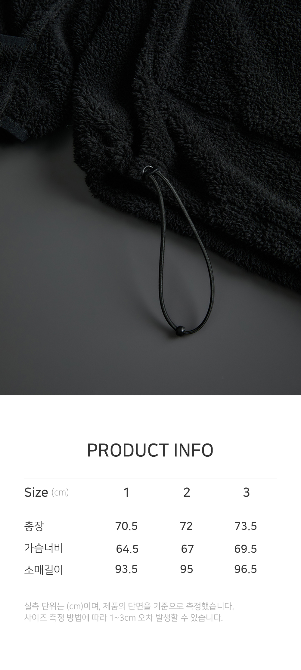 Polyester 100% recovery pullover point label the hem features a drawstring semi-overfit silhouette 1 : Length 70.5cm / Chest 64.5cm / Sleeve Length 93.5cm 2 : Length 72cm / Chest 67cm / Sleeve Length 95cm 3 : Length 73.5cm / Chest 69.5cm / Sleeve Length 96.5cm Hand wash recommended Do not bleach Wash dark and light colors separately Avoid long exposure to sunlight Dry flat in shade Use neutral detergent Avoid strong friction or snagging