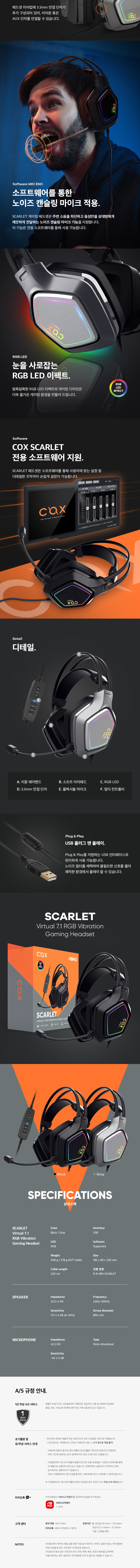 COX 스칼렛 가상 7.1 노이즈 캔슬링 마이크 진동 초경량 헤드셋