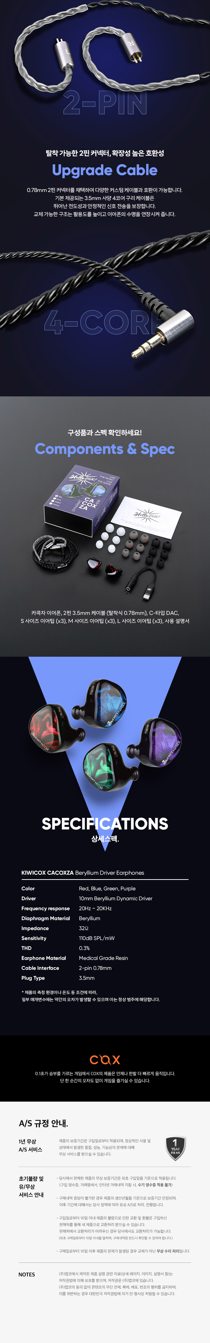 콕스 KIWICOX 카콕자 베릴륨 드라이버 키위이어스 게이밍 배그 발로란트 유선 이어폰