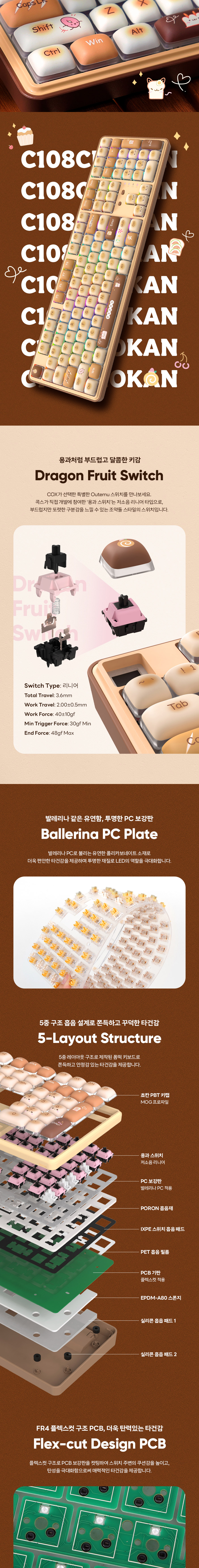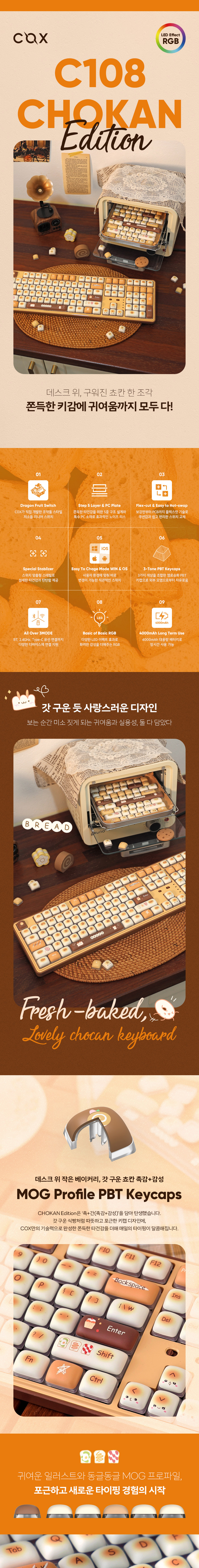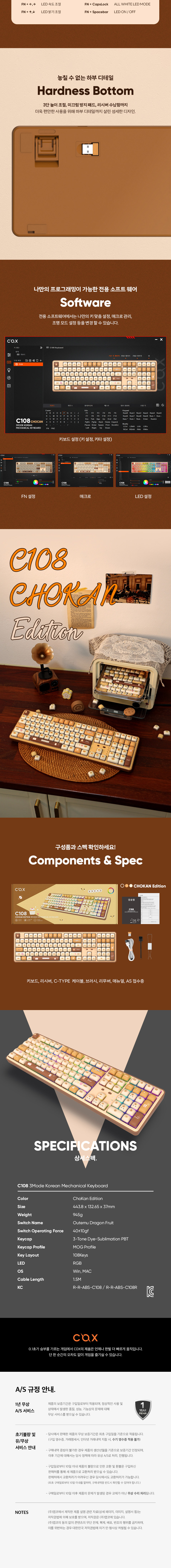 콕스 C108 쵸칸 에디션 한글 기계식 키보드 용과축