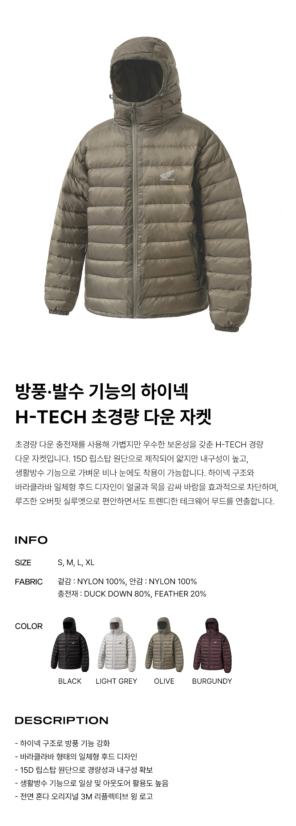 혼다 H-Tech 스톰 실드 파카 올리브