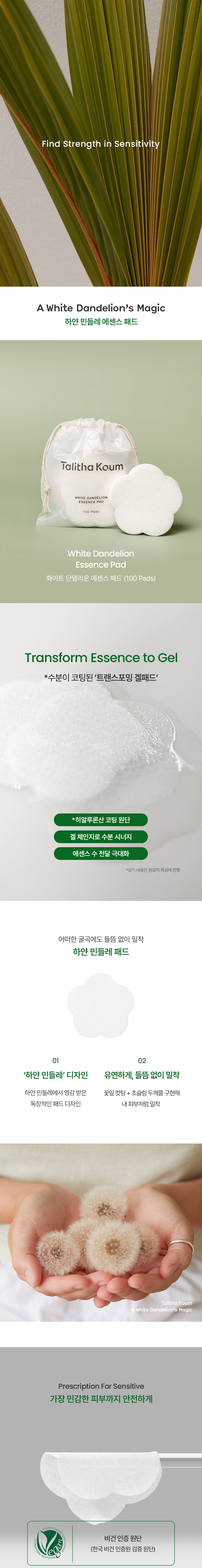 탈리다쿰 에이치엠베리어 화이트 단델리온 에센스 패드 100매