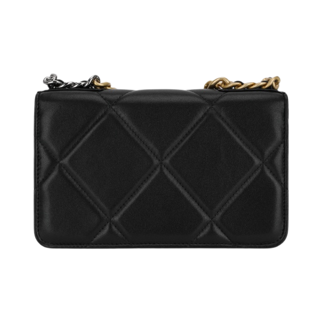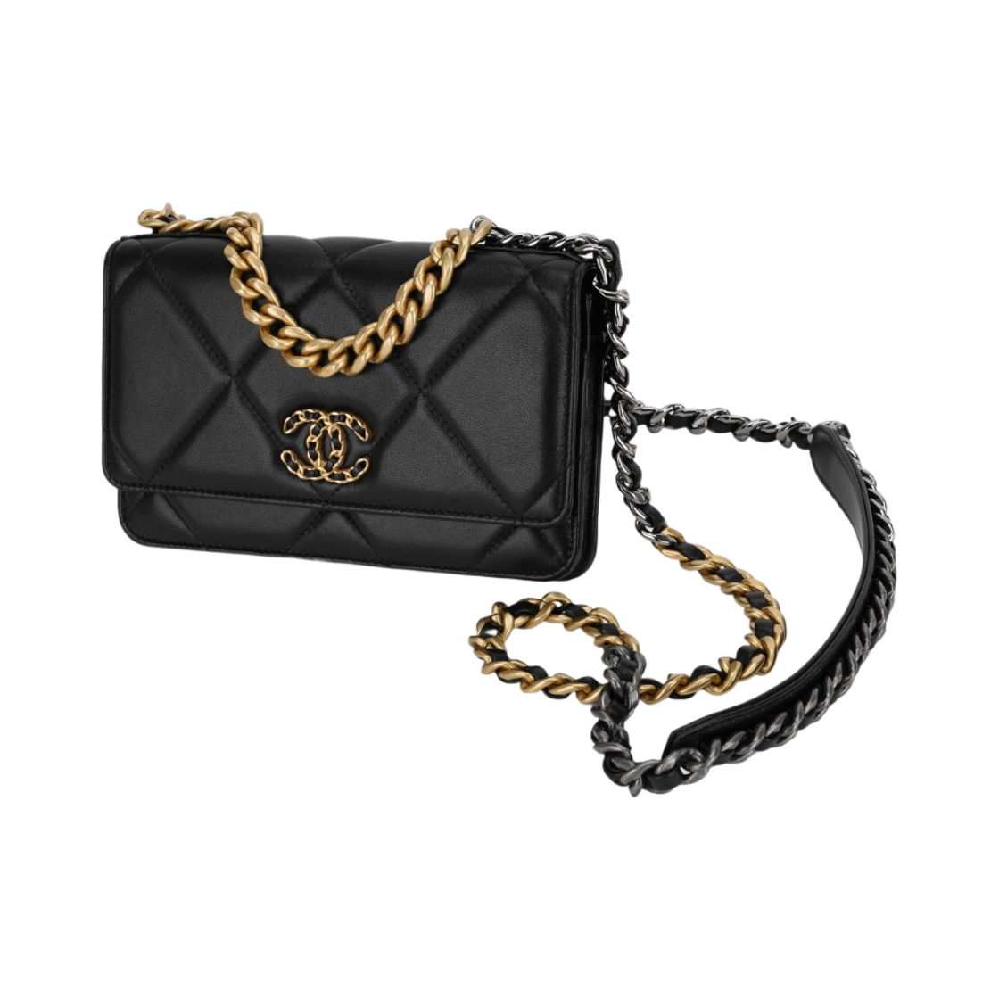 샤넬 19 체인 지갑 램스킨 & 골드 실버 루테늄 메탈 블랙