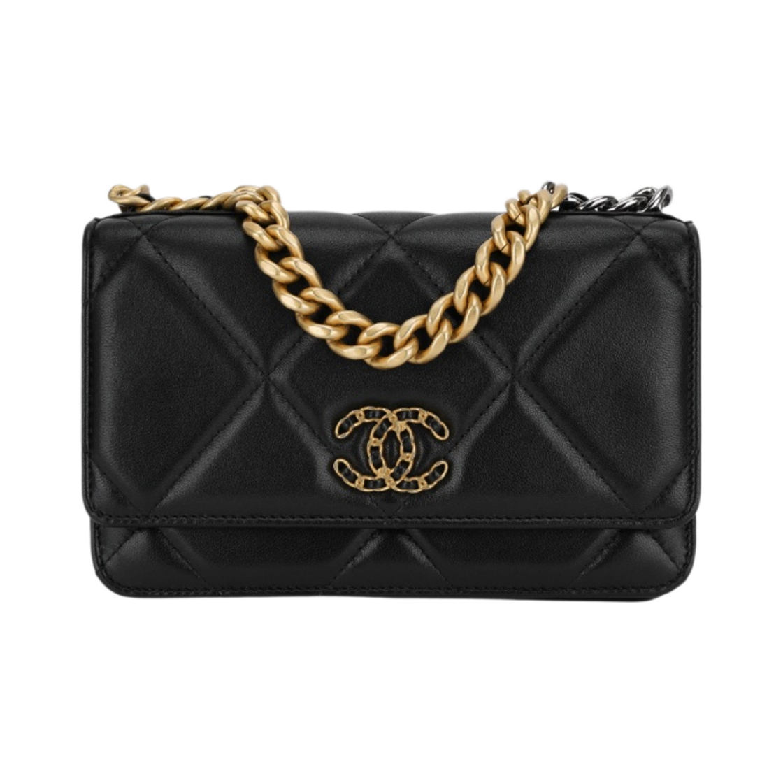 Chanel 19 Wallet On Chain Lambskin & Gold Silver Ruthenium Black