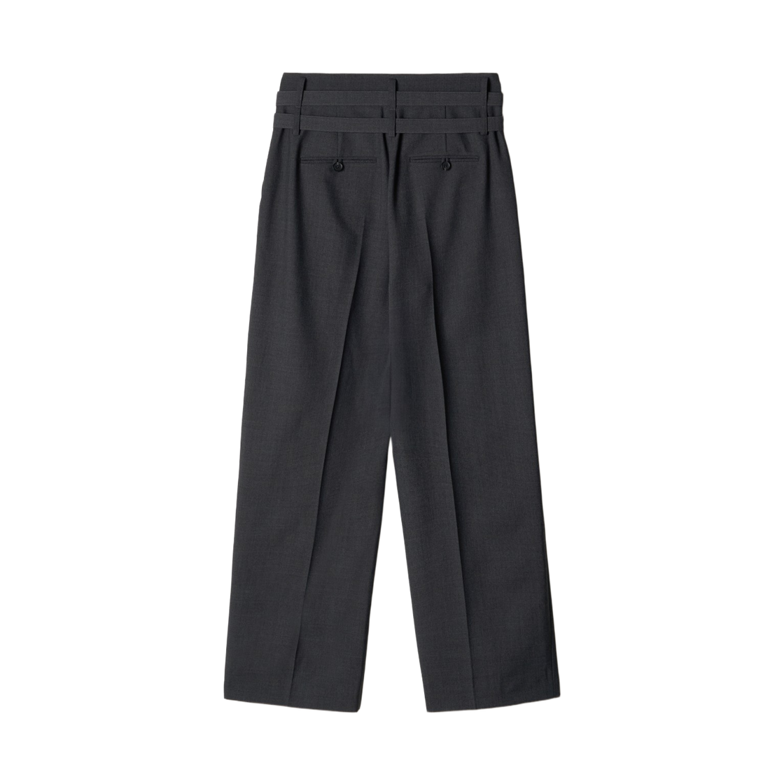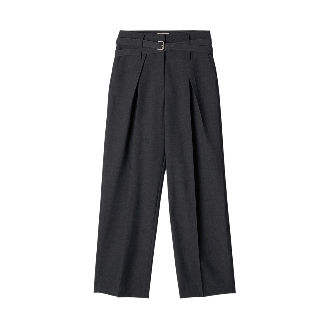 (W) Aviemuah Cross Belted Wide Wool Trousers Grey