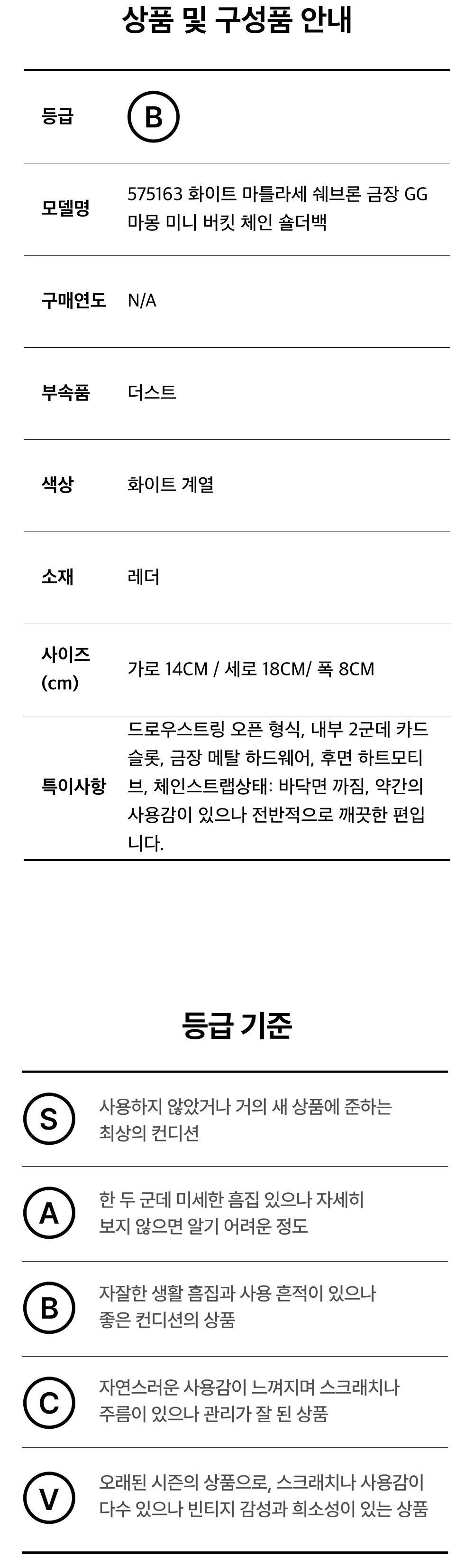 구찌 575163 화이트 마틀라세 쉐브론 금장 GG 마몽 미니 버킷 체인 숄더백