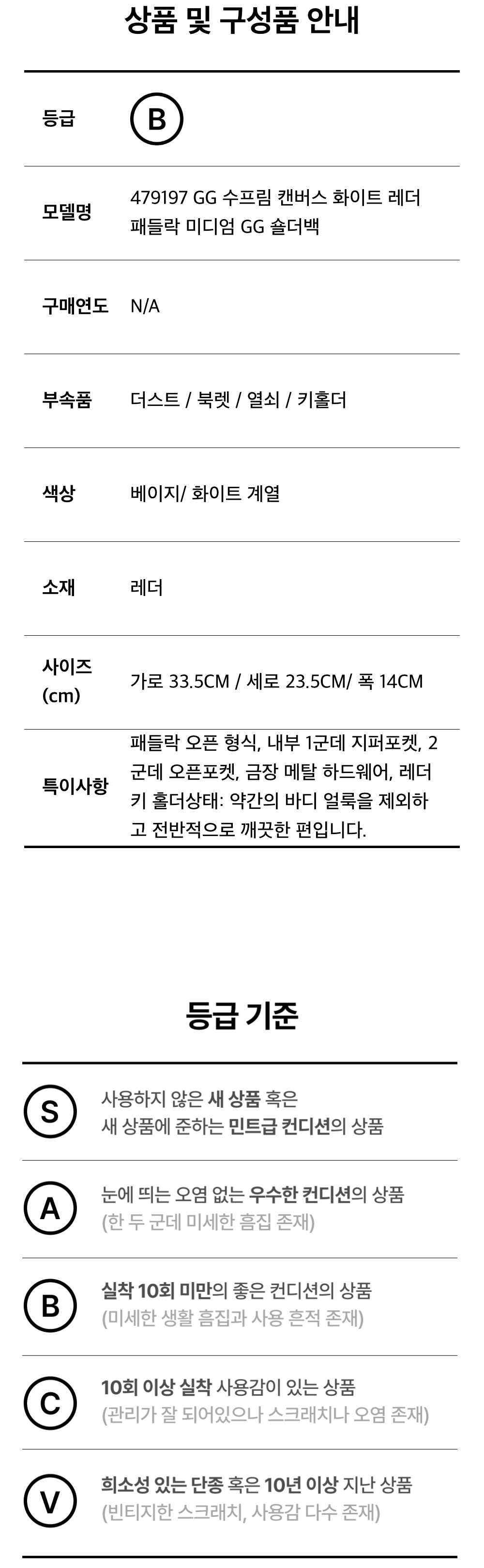 구찌 수프림 캔버스 화이트 레더 패들락 미디엄 GG 숄더백