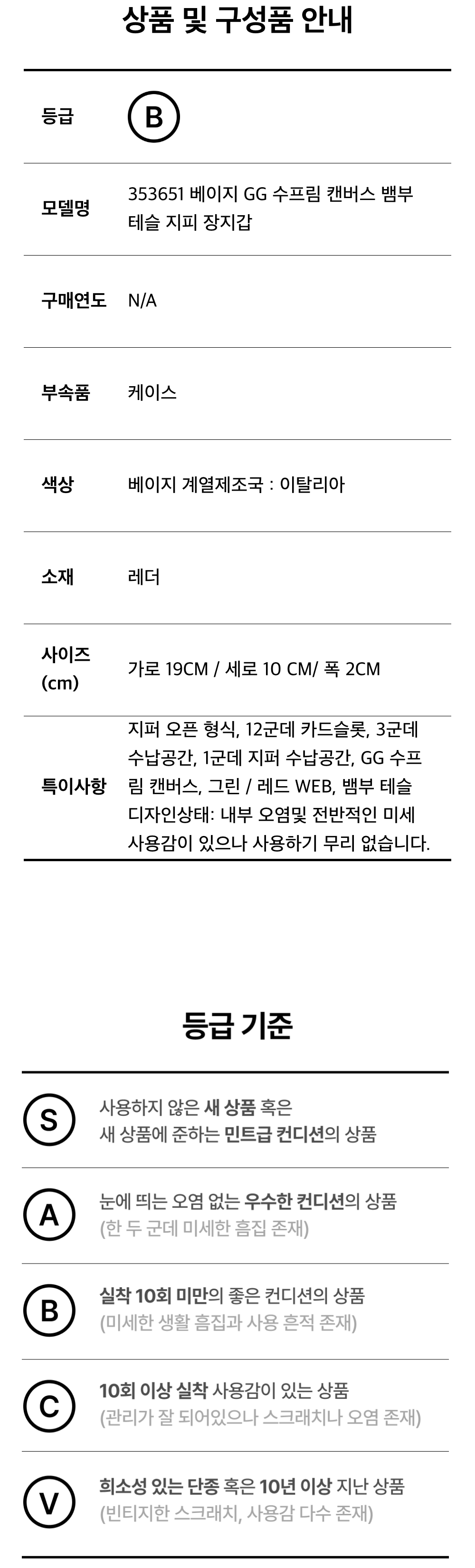 구찌 353651 베이지 GG 수프림 캔버스 뱀부 테슬 지피 장지갑