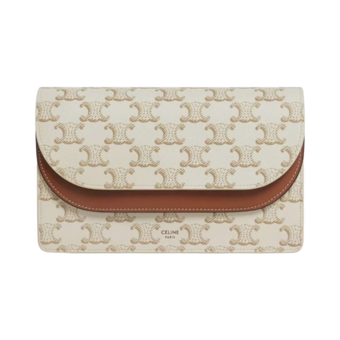 셀린느 트리옹프 캔버스 & 스무스 램스킨 스트랩 월렛 화이트 탄
