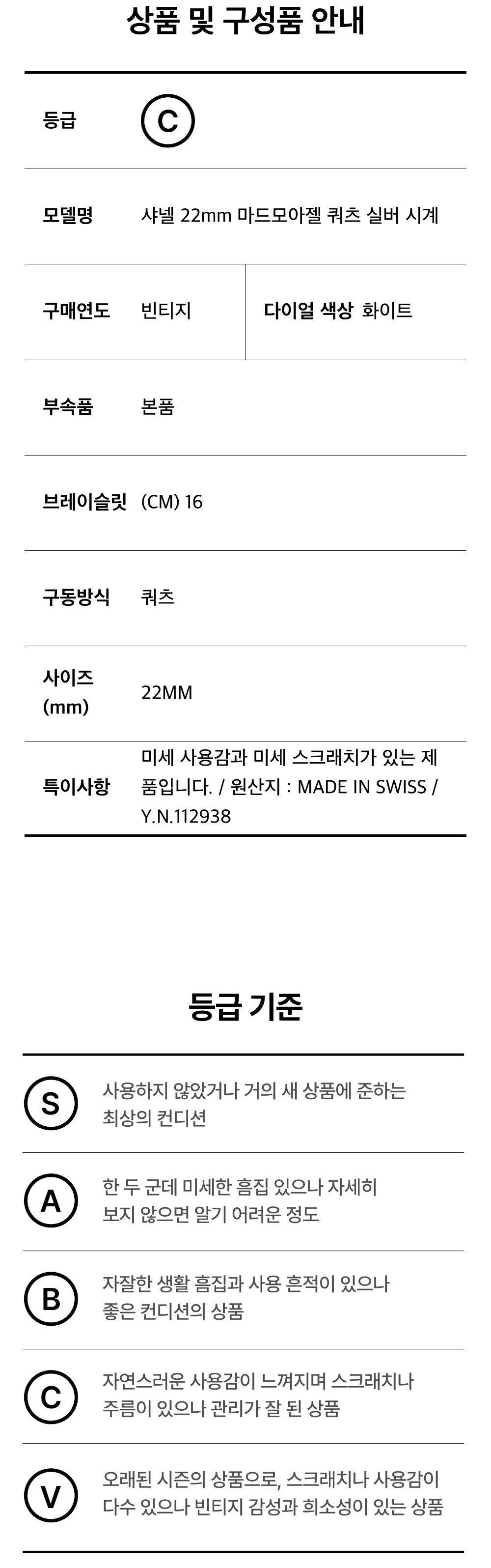 샤넬 22mm 마드모아젤 쿼츠 실버 시계 A-B39966