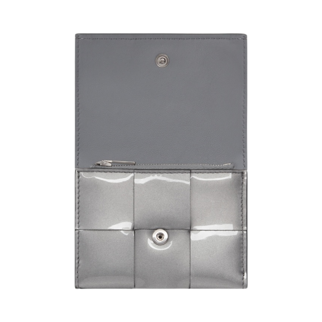 보테가 베네타 트라이폴드 지퍼 지갑 실버