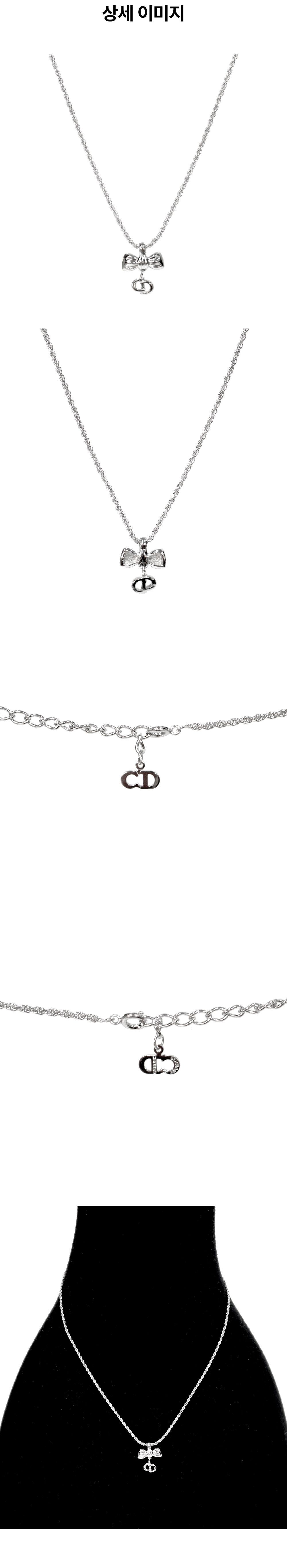 디올 리본 CD 실버 목걸이 A-B41910