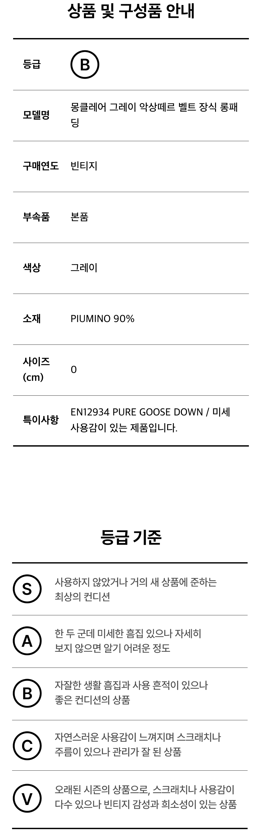 몽클레르 그레이 악상떼르 벨트 장식 롱패딩 A-C43213