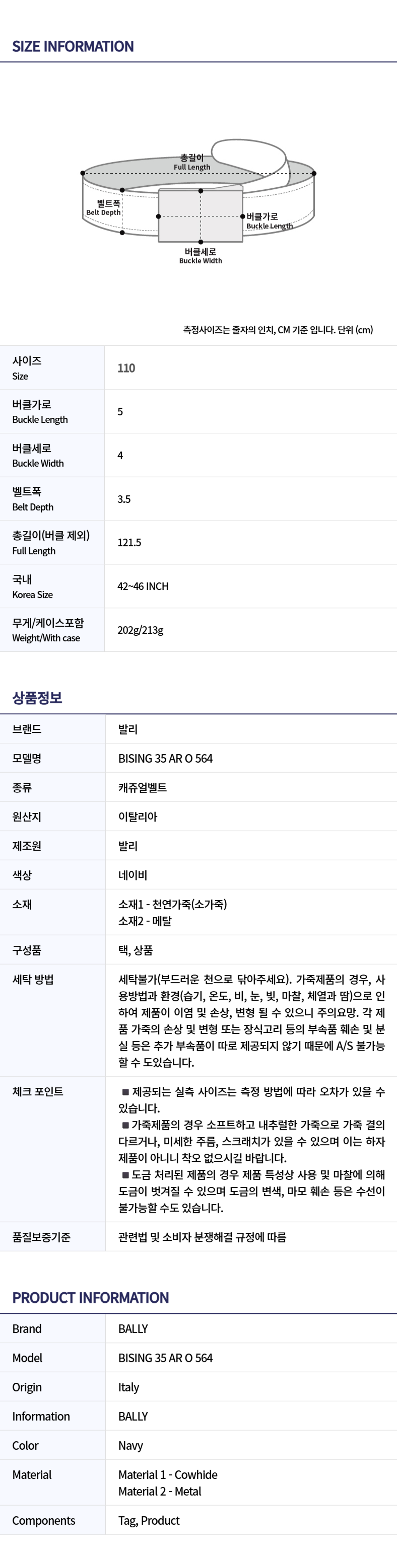 [15% 쿠폰] 발리 바이싱 35mm 리버시블 벨트 네이비