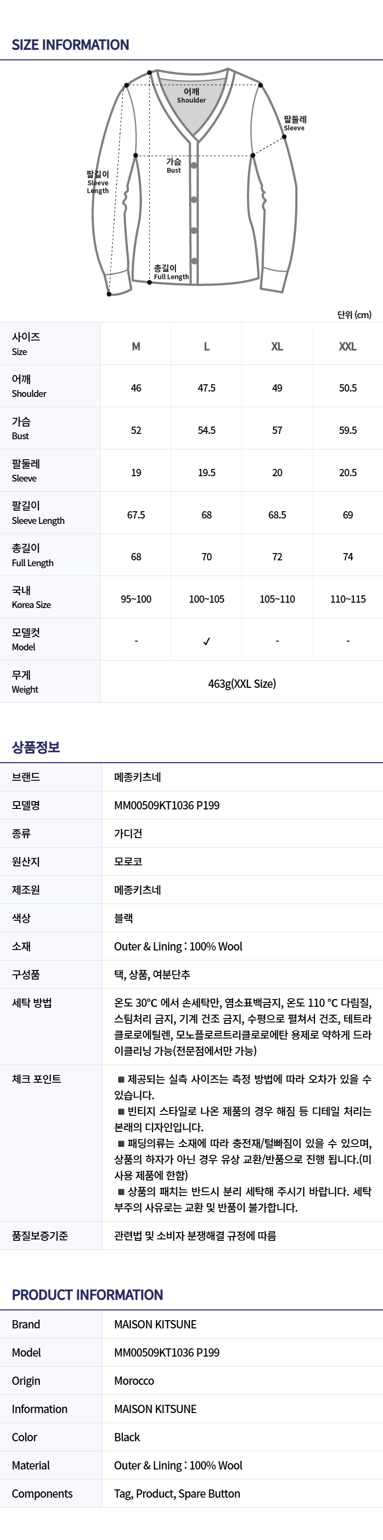 [15% 쿠폰] 메종 키츠네 볼드 폭스 헤드 패치 레귤러 가디건 블랙