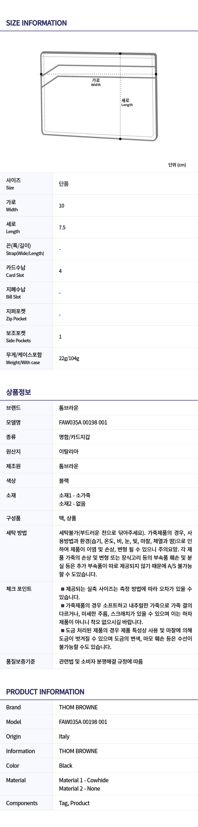 [15% 쿠폰] 톰브라운 페블 그레인 레더 스트라이프 노트 컴파트먼트 카드 홀더 블랙