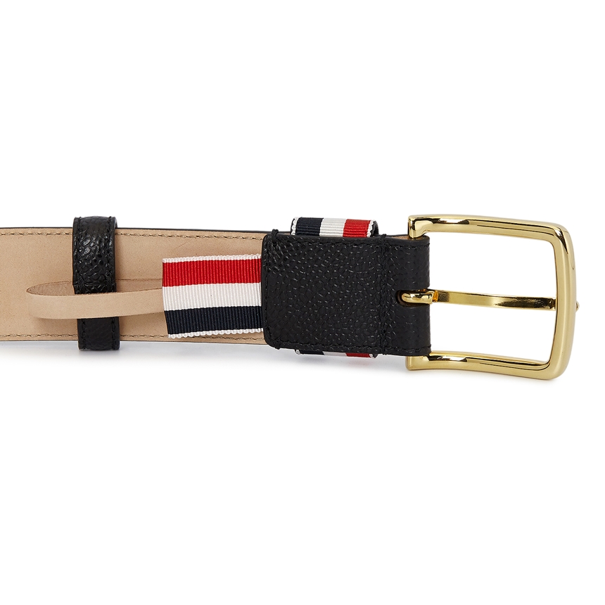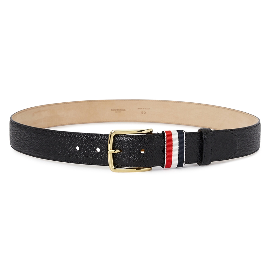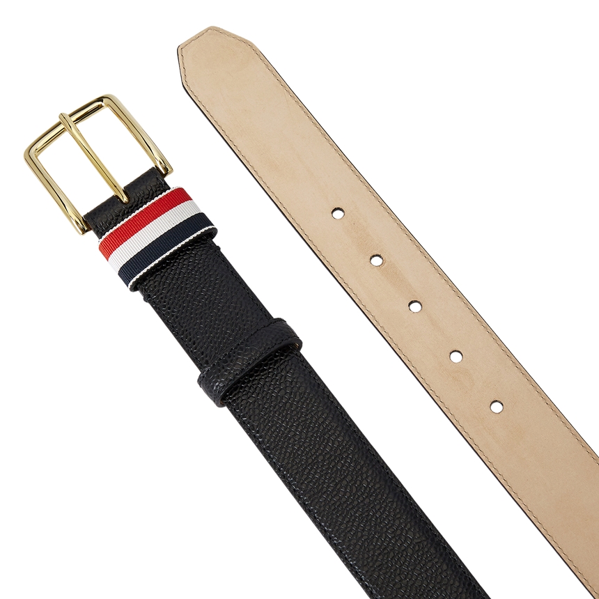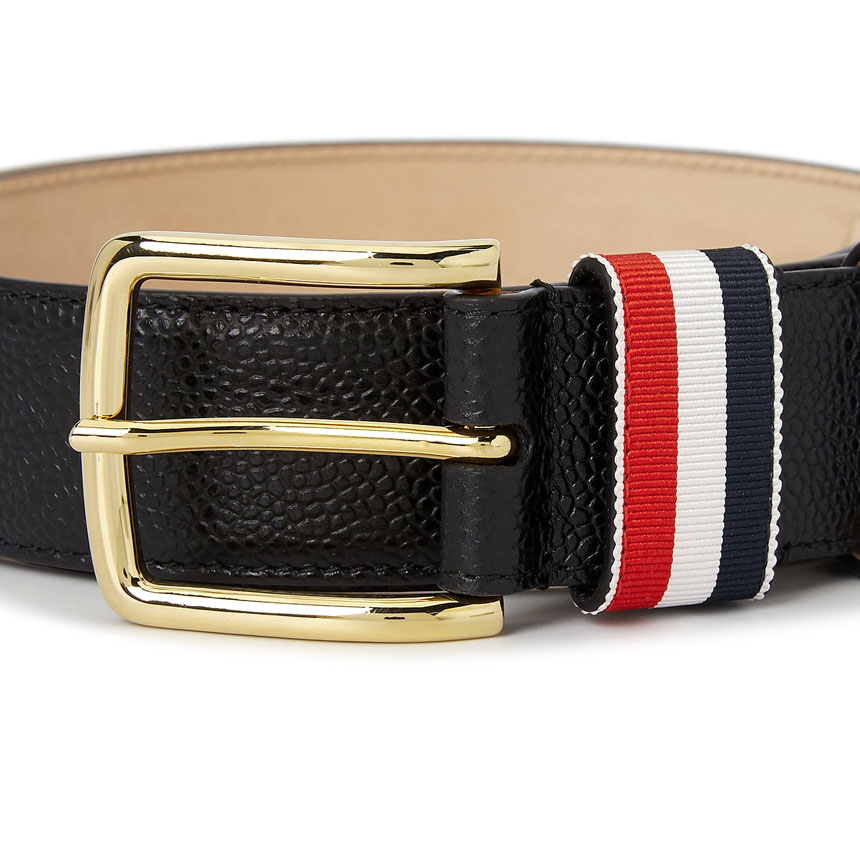 [15% 쿠폰] Thom Browne Calfskin Pebbled Leather Belt Black