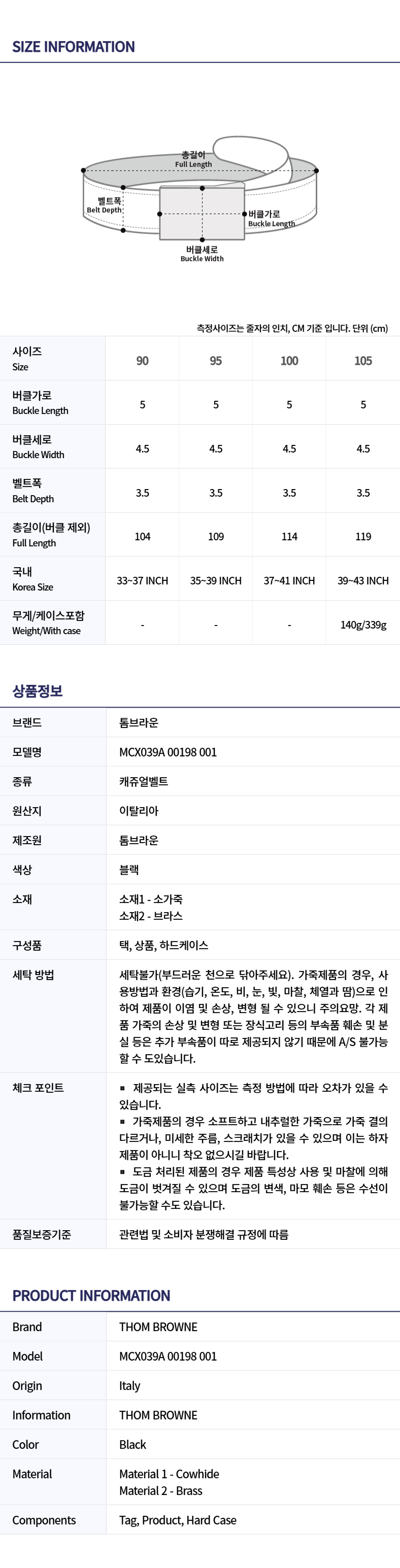 [15% 쿠폰] 톰브라운 카프스킨 페블 레더 벨트 블랙