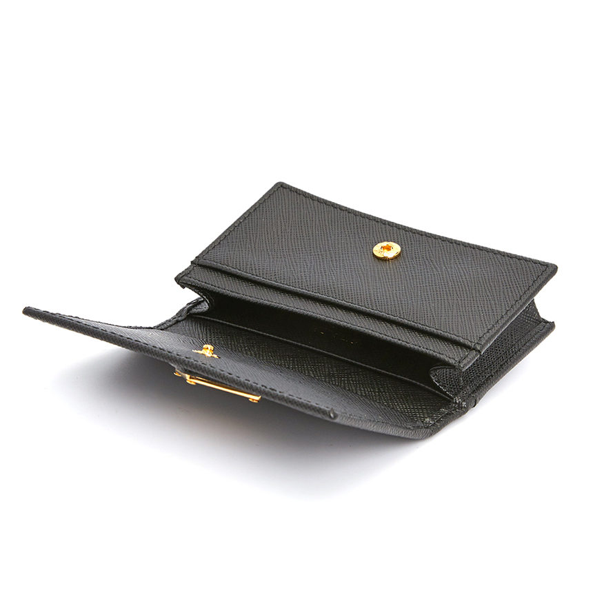 [15% 쿠폰] 프라다 사피아노 레더 트라이앵글 로고 카드 홀더 블랙