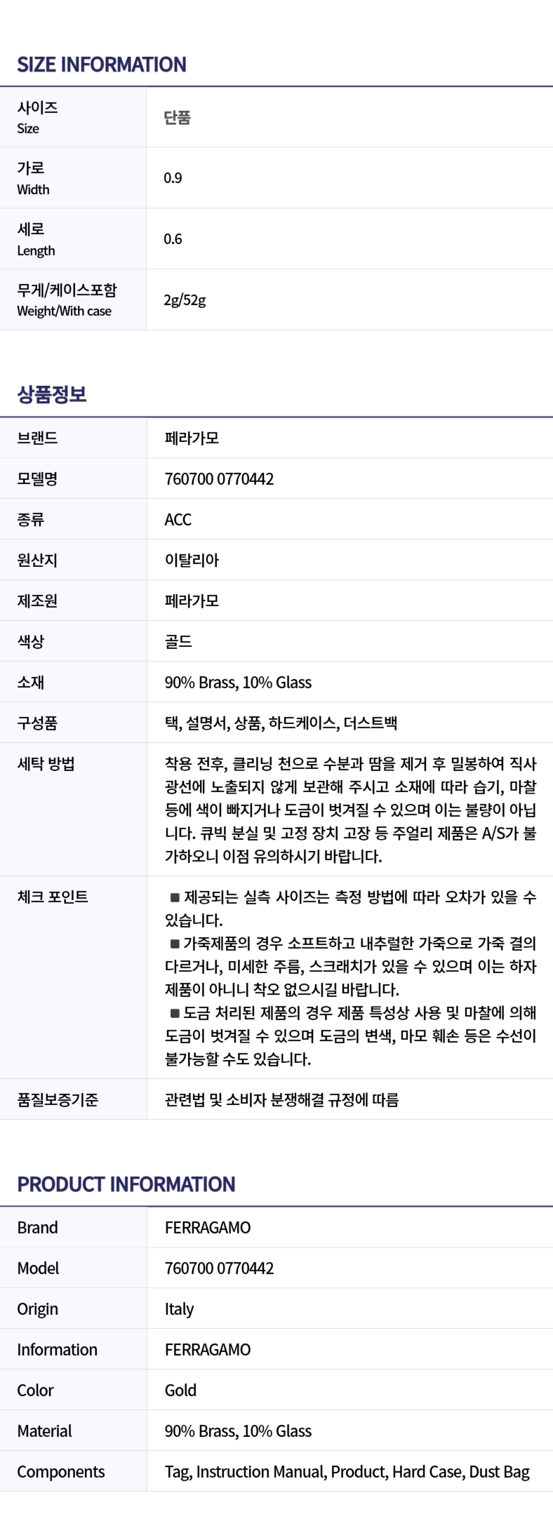 [15% 쿠폰] (W) 페라가모 간치니 이어링 골드