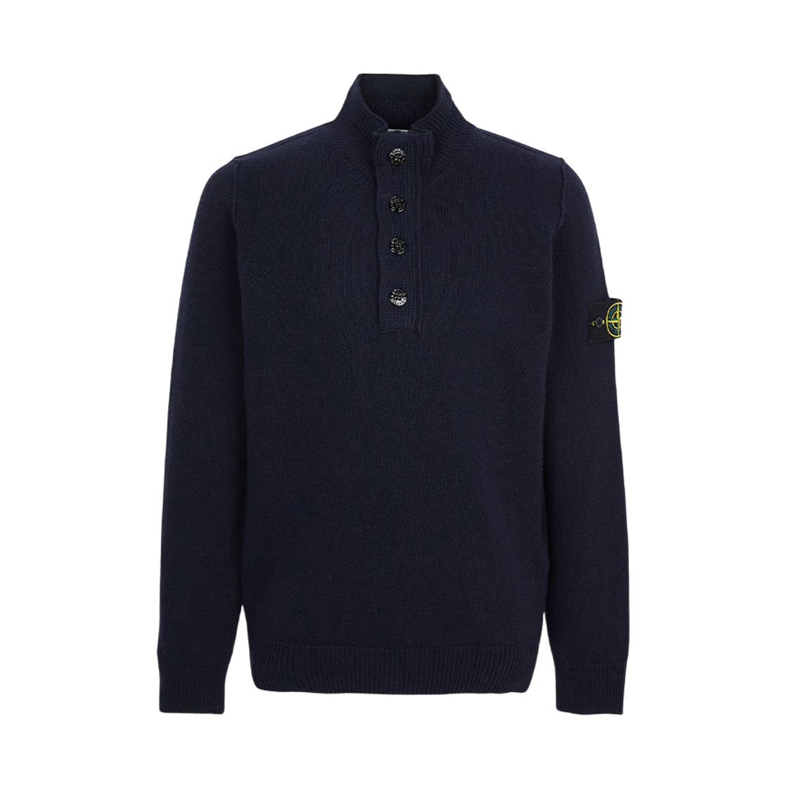 [15% 쿠폰] Stone Island 5100040 Lambswool Half-Zip Jumper with Felt Trims Navy Blue - 25FW