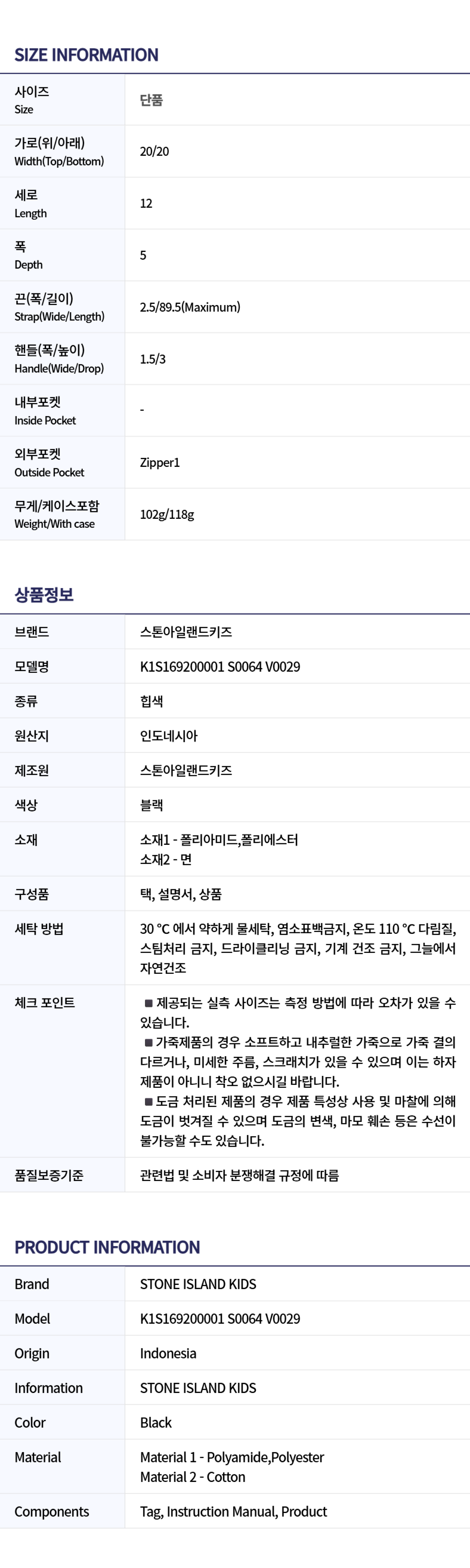 [15% 쿠폰] (키즈) 스톤 아일랜드 웨이스트 백 블랙 - 25SS
