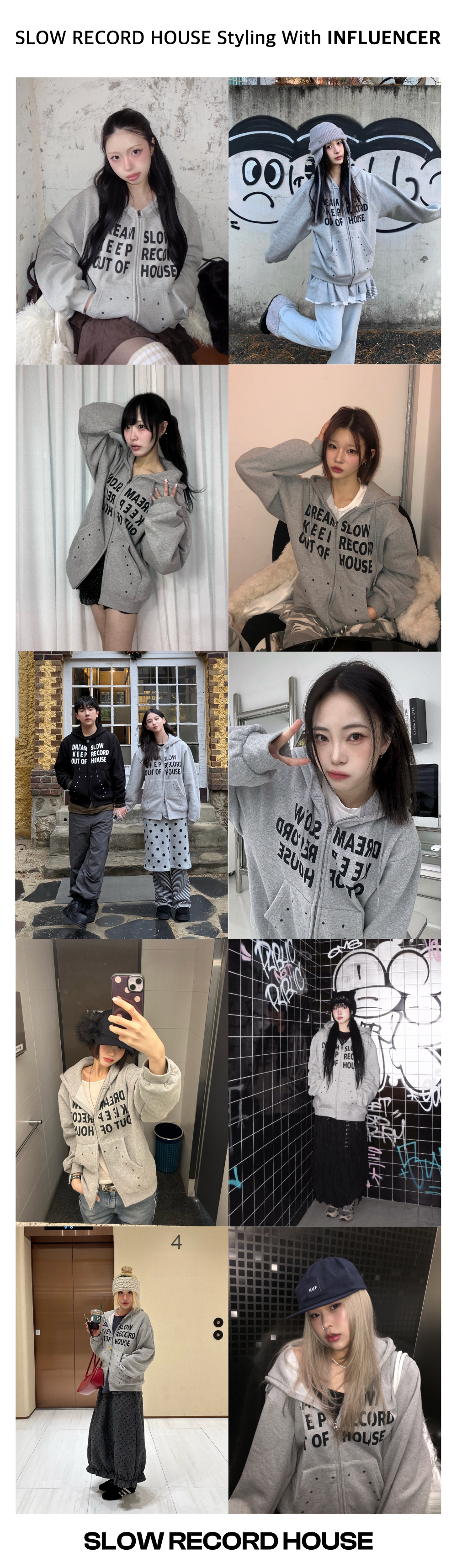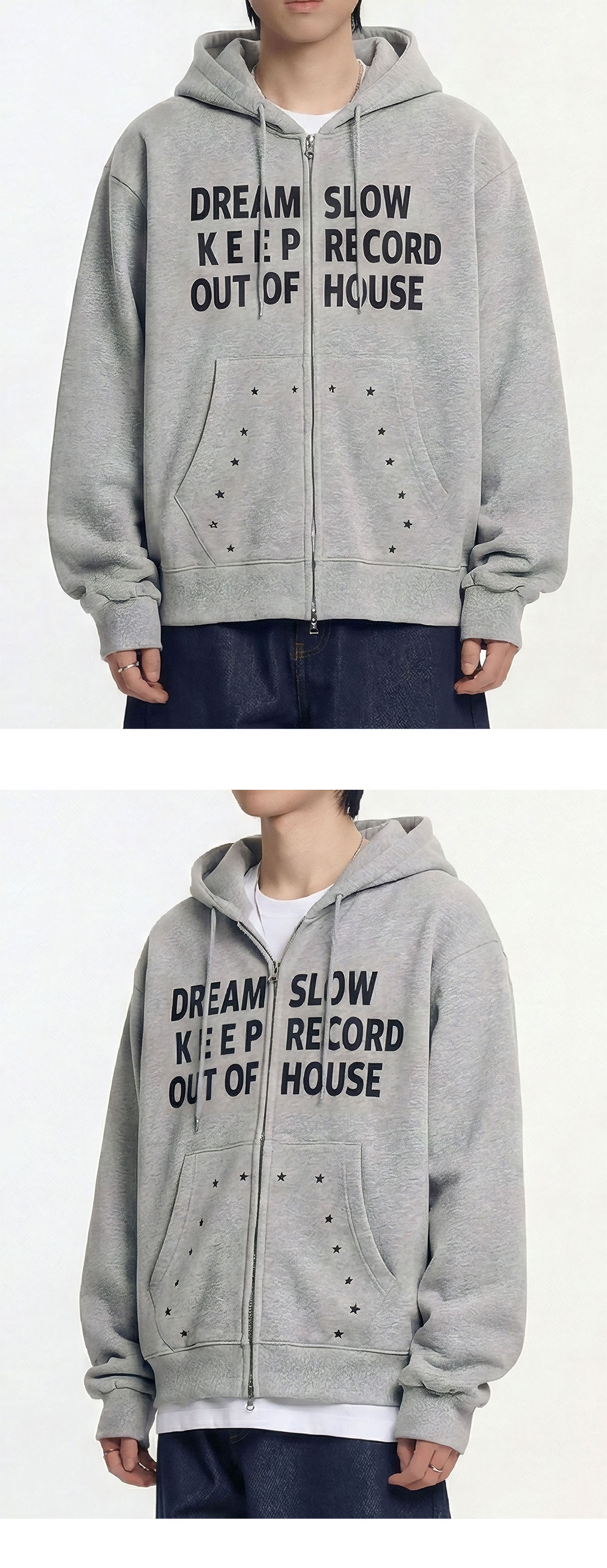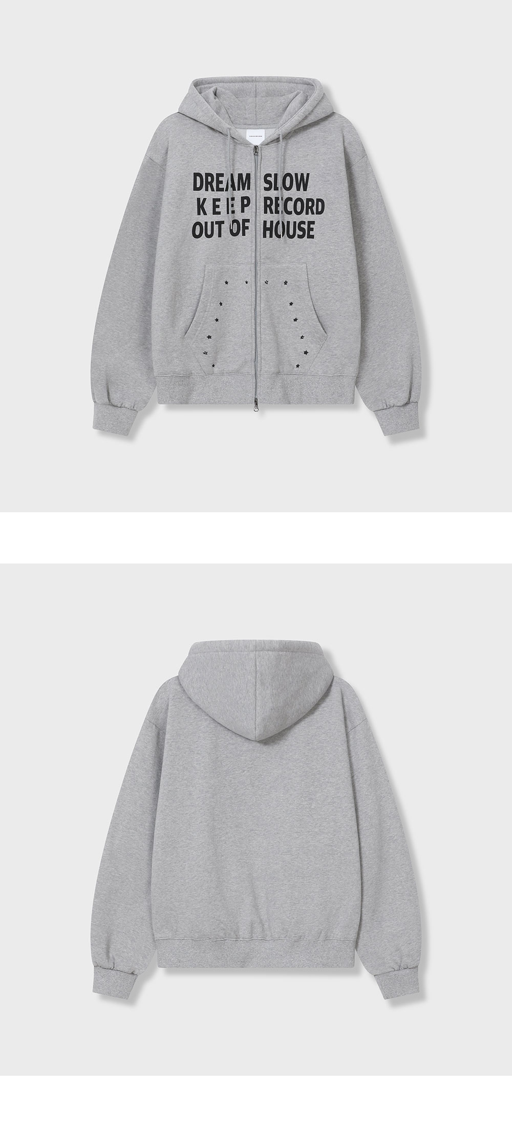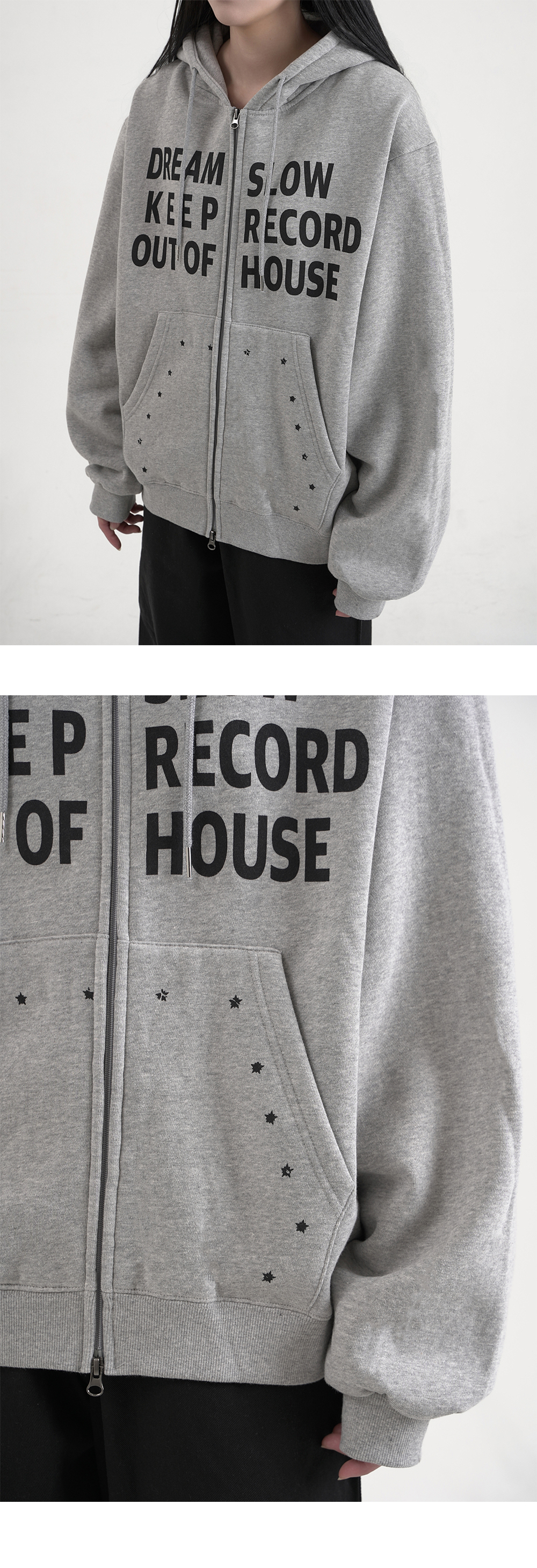 SLOW RECORD HOUSE Typo Star Hood Zip-Up Grey